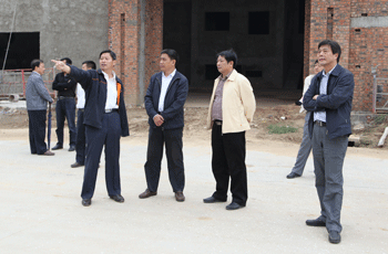 遂平縣委書記付自成(前左二)在聽取遂平公司工作匯報 前右二為遂平縣委常委、常務(wù)副縣長楊欣宇 前左一為遂平公司總經(jīng)理王樹善
