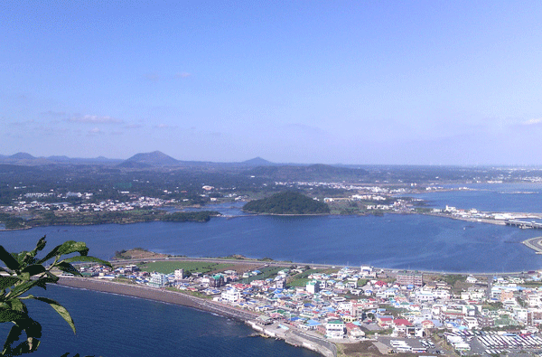 欣賞完了古代宮廷和近代戰(zhàn)爭武器,我們乘機(jī)飛赴被稱為“東方夏威夷”的濟(jì)州島。濟(jì)州島美不虛傳,這里有空曠蔚藍(lán)的天空,起伏曲折的道路,高聳入云的椰子樹,掛滿枝頭的桔子園,還有可以俯瞰濟(jì)州島的城山日出峰,從奇巖峭壁順流而下的天地淵瀑布……