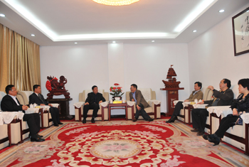 11月5日,湖北當(dāng)陽市黨政考察團在當(dāng)陽市委書記鄭廷貴的率領(lǐng)下蒞臨公司視察。臨沭縣委書記孫豐剛親切會見了鄭廷貴書記一行;董事長高文班,公司領(lǐng)導(dǎo)高文安、高文靠等陪同。雙方愉快地進行了交流會商。