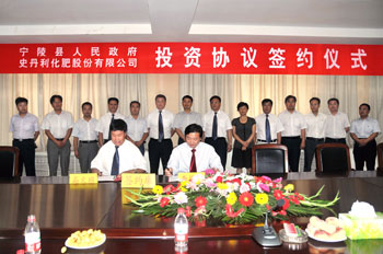 寧陵縣委副書記、縣長李振興在致辭中說,寧陵縣招商政策優(yōu)惠,投資環(huán)境優(yōu)良。此次投資協(xié)議的簽署,充分證明史丹利公司選擇在寧陵縣投資興業(yè)的決策是正確的。希望此次合作能進一步帶動雙方相關(guān)產(chǎn)業(yè)的延伸發(fā)展,以更好的服務(wù)中原“三農(nóng)”事業(yè),促進寧陵縣經(jīng)濟和社會發(fā)展作出更大的貢獻。