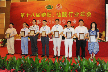 6月23日,第十八屆全國磷肥、硫酸行業(yè)年會暨中國磷肥工業(yè)協(xié)會成立20周年、中國硫酸工業(yè)協(xié)會成立25周年紀(jì)念大會在北京隆重召開。會上,董事長高文班以在復(fù)合肥行業(yè)取得的巨大成績和對“三農(nóng)”事業(yè)的杰出貢獻(xiàn),榮獲兩協(xié)會聯(lián)合頒發(fā)的“突出貢獻(xiàn)獎”。